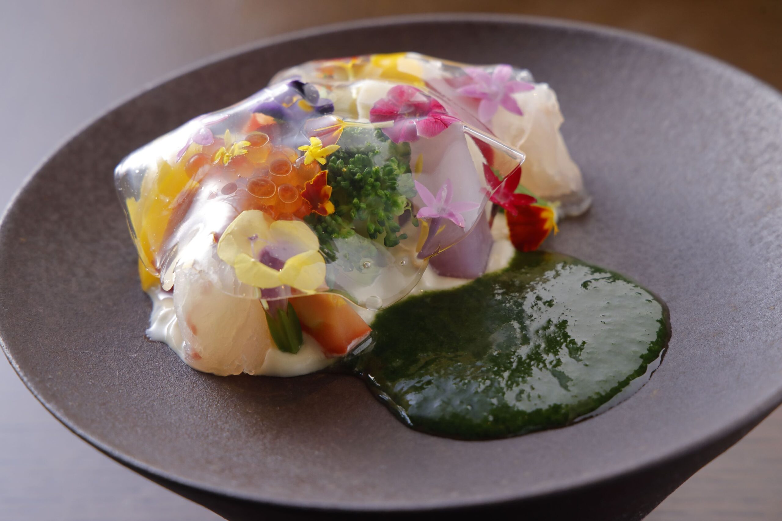 坂ノ途中 季節野菜/ ズワイ蟹/ 千代豆腐店 極上豆乳 /昆布出汁満月塩のジュレ